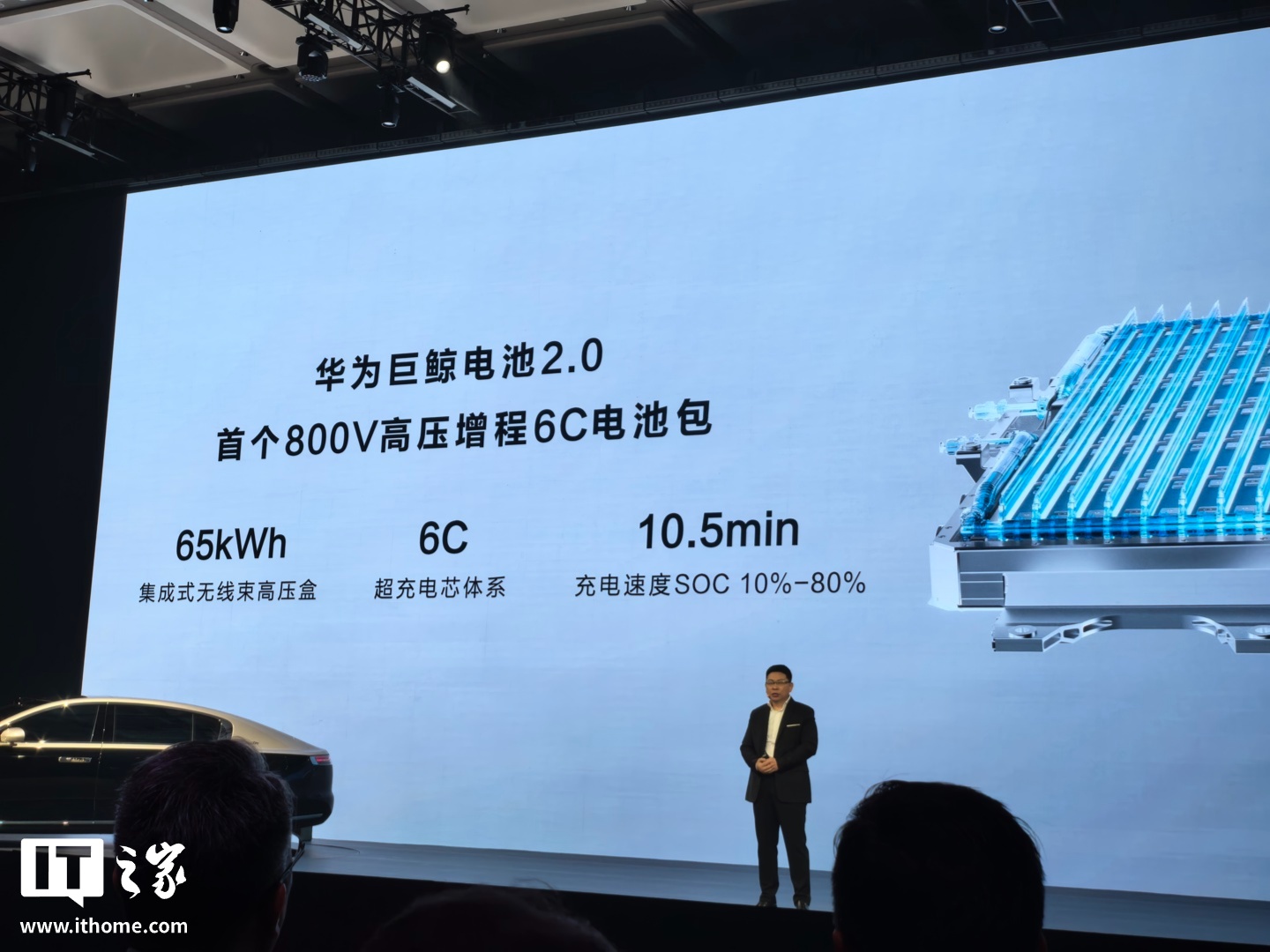 据IT之家此前报道,2023 年 11 月 28 日,华为常务董事、智能汽车解决方案 BU 董事长余承东在智界 S7 发布会上表示,该车搭载全新华为巨鲸 800V 高压电池平台,可实现充电 5 分钟续航 215km、双 800 纯电里程。今年 2 月,余承东宣布尊界 S800 首发行业首个 800V 高压增程 6C 电池包 —— 华为巨鲸电池 2.0,其采用 6C 超充电芯体系,SOC 10% 充至 80% 只需 10.5 分钟。